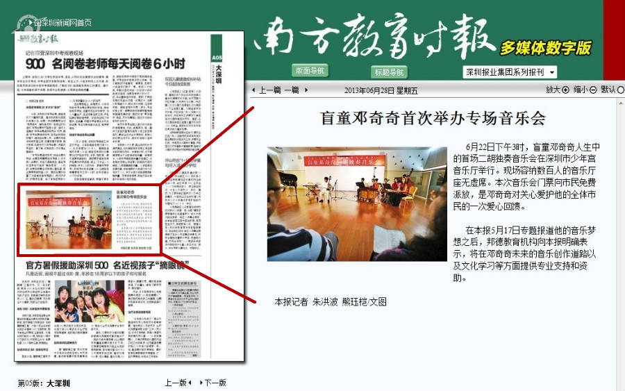 〖南方教育时报〗盲童邓奇奇首次举办专场音乐会