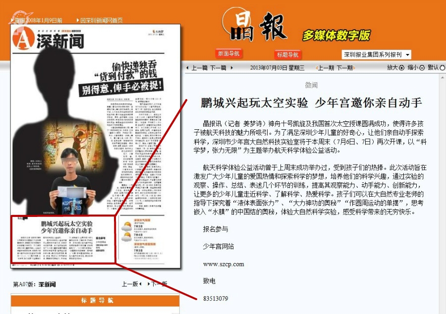 〖晶报〗鹏城兴起玩太空实验 少年宫邀你亲自动手