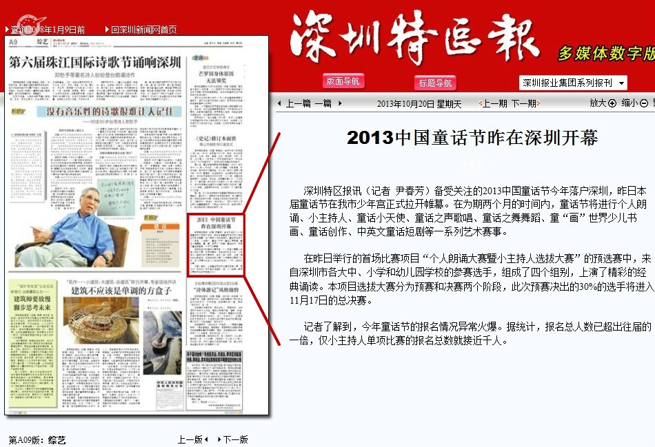 〖深圳特区报〗2013中国童话节昨在深圳开幕