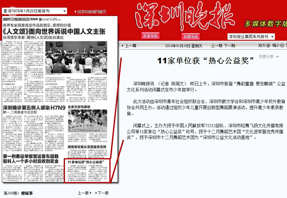 闭幕式上,主办方授予中国人民解放军75212部队、深圳市轻舞飞扬文化传播有限公司等11家单位“热心公益奖”称号,授予十二月舞蹈艺术团“文化进军营优秀传播奖”,授予深圳市十二月舞蹈艺术团为“深圳市公益文化活动基地”。
