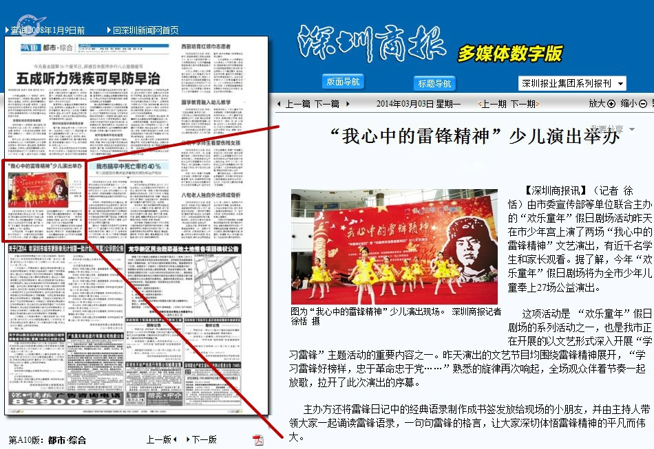 〖深圳商报〗“我心中的雷锋精神”少儿演出举办