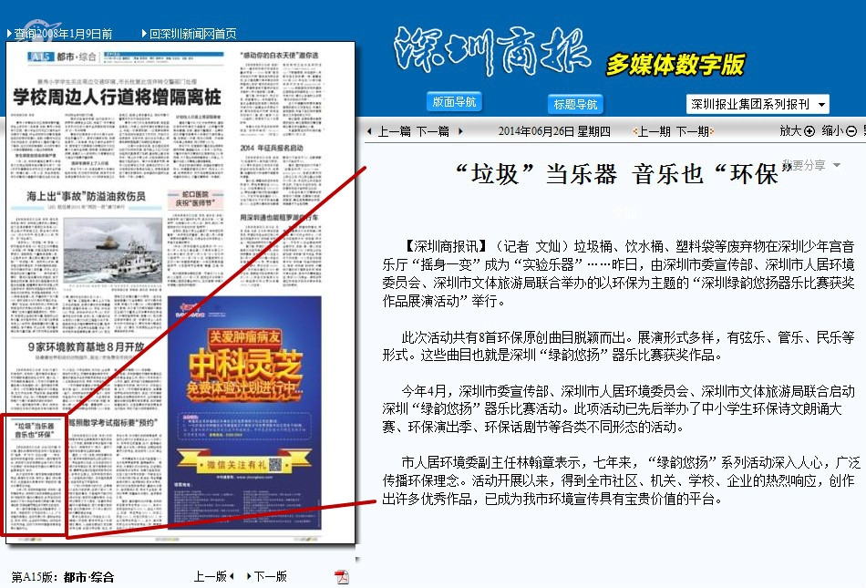〖深圳商报〗“垃圾”当乐器 音乐也“环保”