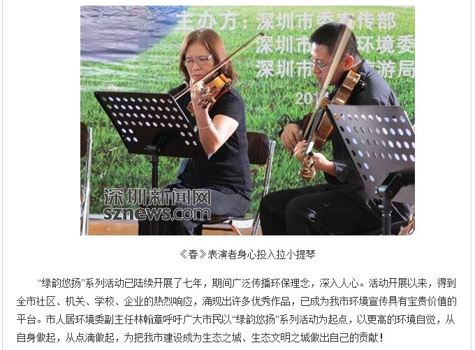 〖深圳新闻网〗深圳“绿韵悠扬”环保器乐获奖曲目展演 用器乐演奏出环保