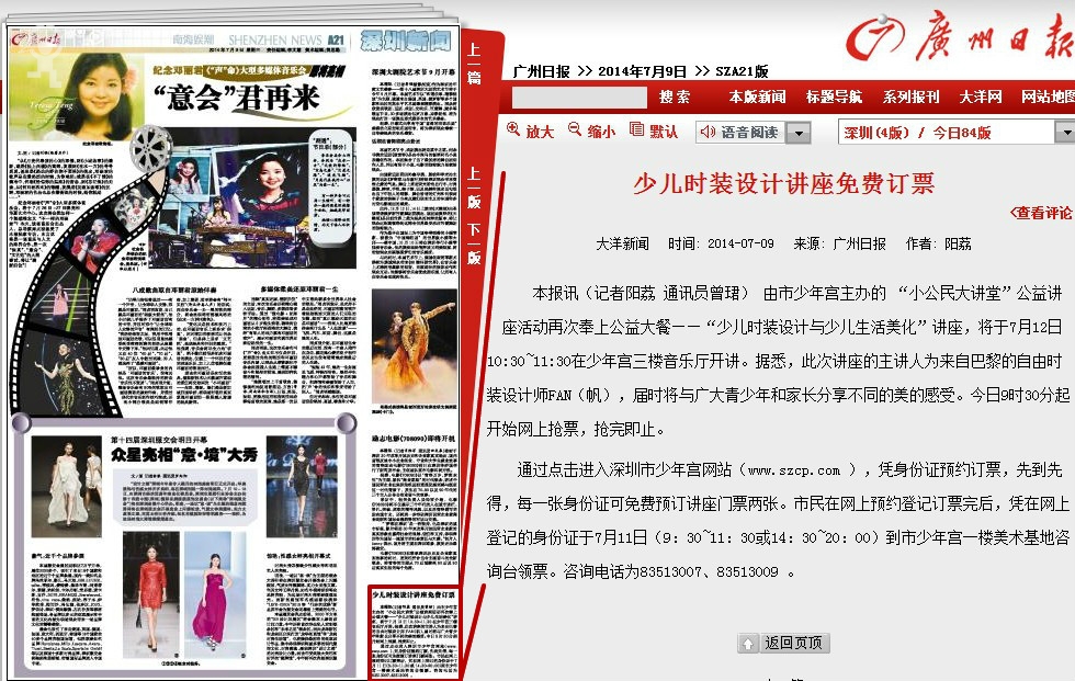〖广州日报〗少儿时装设计讲座免费订票