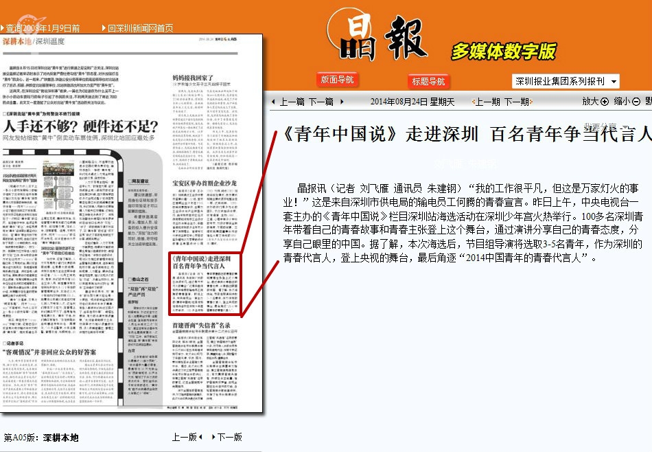 〖晶报〗《青年中国说》走进深圳 百名青年争当代言人