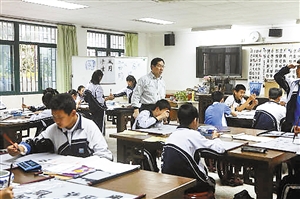 图为记者日前拍摄到的华富中学书法篆刻课选修课堂。