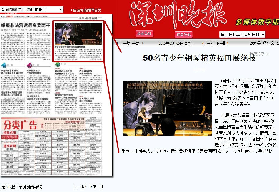 〖深圳晚报〗50名青少年钢琴精英福田展绝技