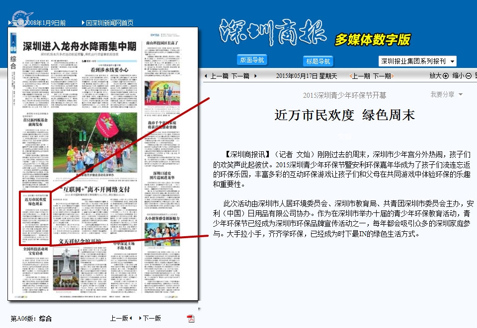 此次活动由深圳市人居环境委员会、深圳市教育局、共青团深圳市委员会主办,安利(中国)日用品有限公司协办。作为在深圳市举办十届的青少年环保教育活动,青少年环保节已经成为深圳市环保品牌宣传活动之一,每年都会吸引众多的深圳家庭参与。大手拉小手,齐齐学环保,已经成为时下最IN的绿色生活方式。