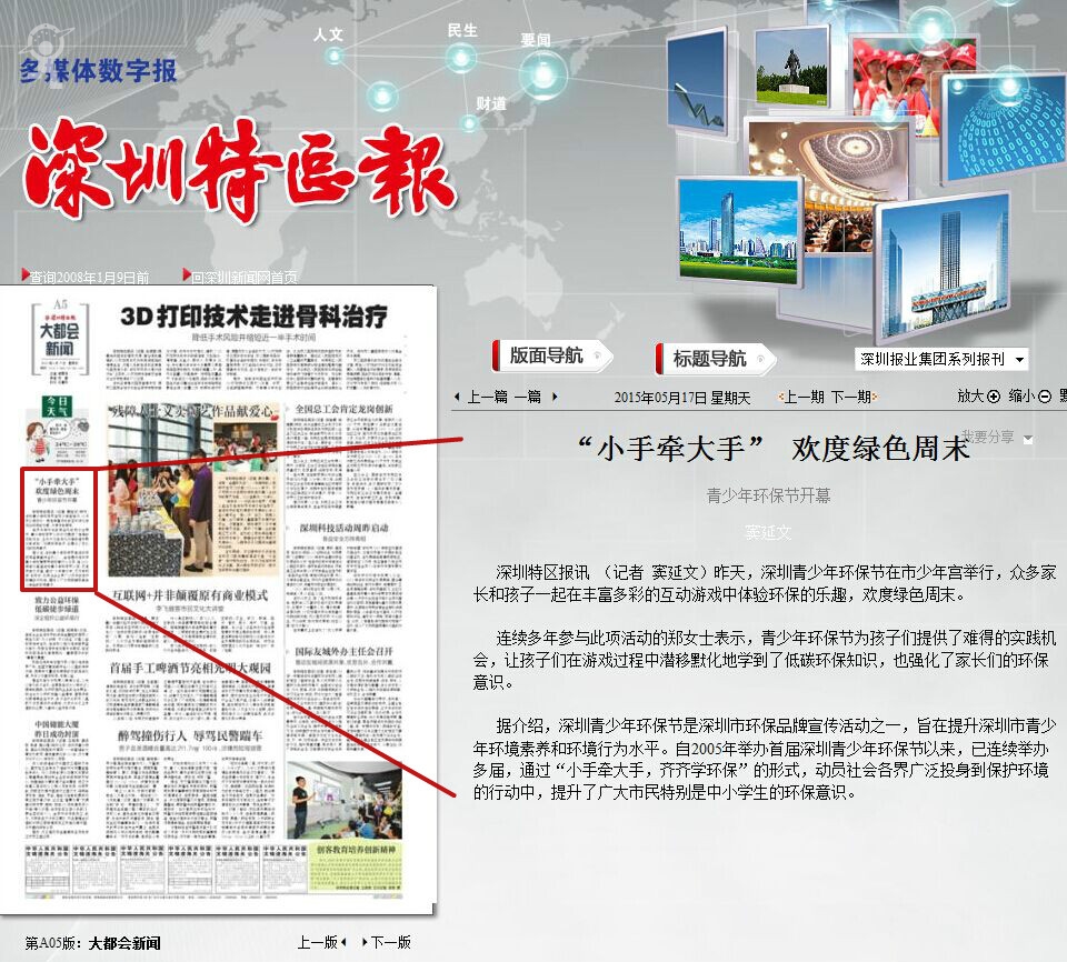 〖深圳特区报〗“小手牵大手”欢度绿色周末