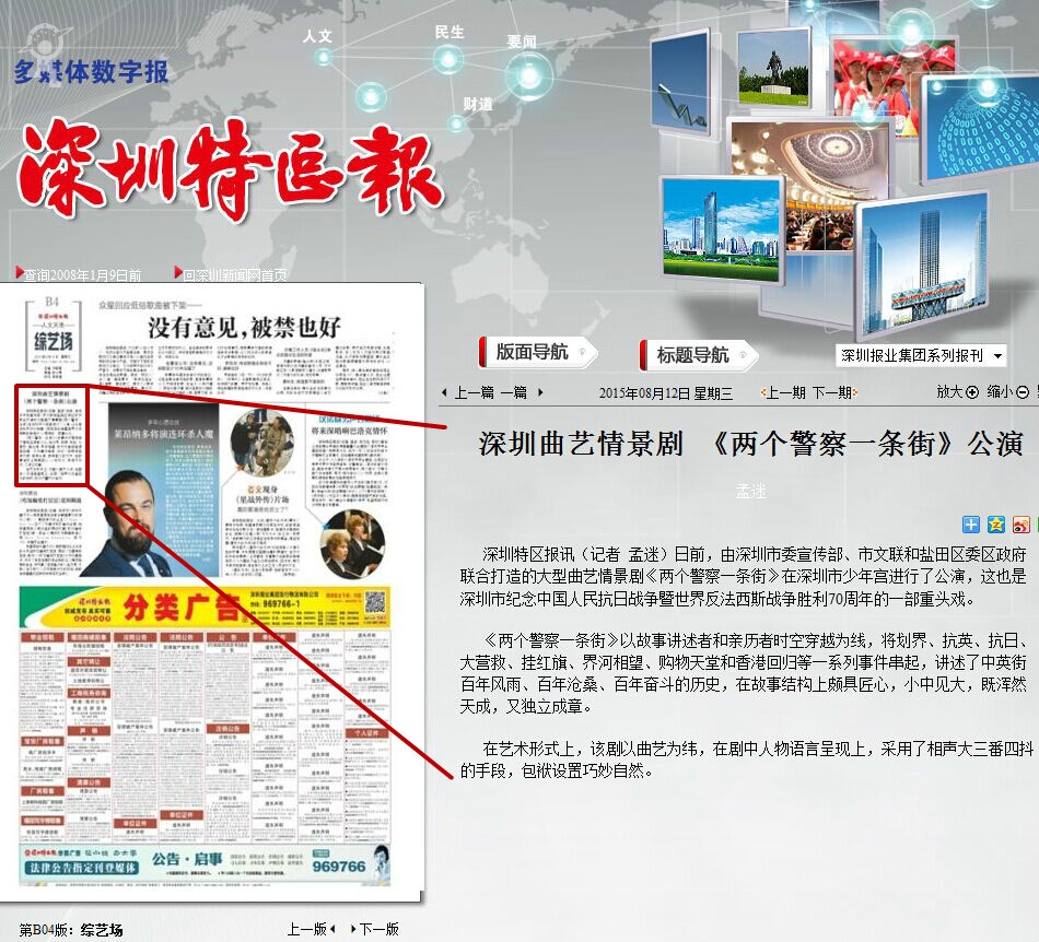 〖深圳特区报〗深圳曲艺情景剧 《两个警察一条街》公演