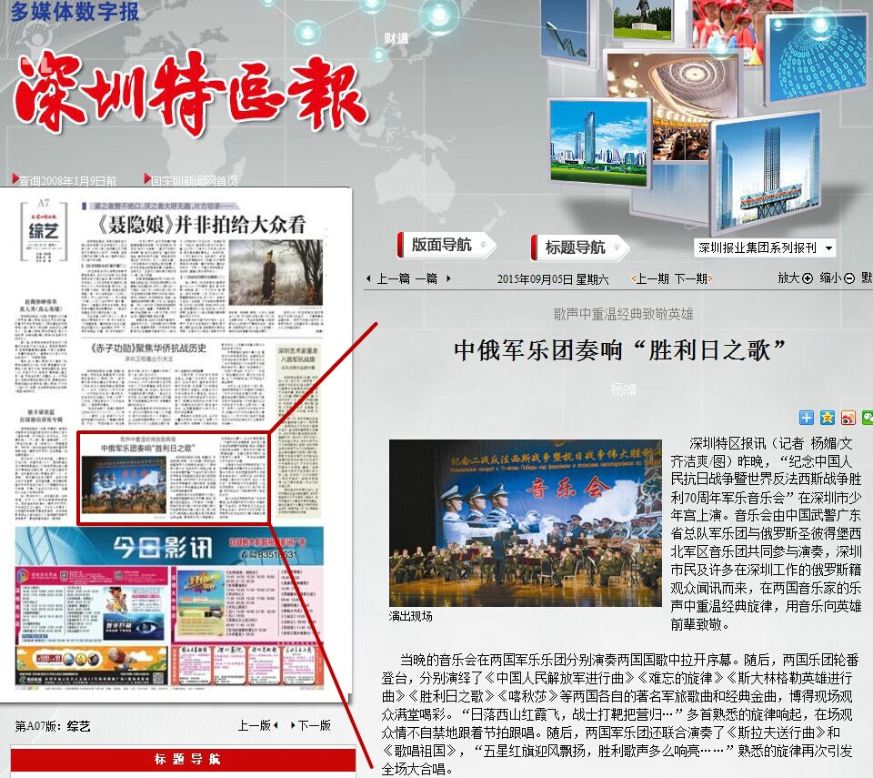 〖深圳特区报〗中俄军乐团奏响“胜利日之歌”