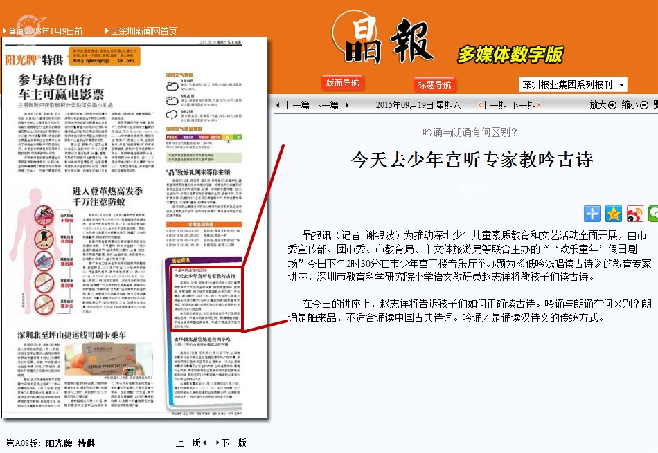 〖晶报〗今天去少年宫听专家教吟古诗