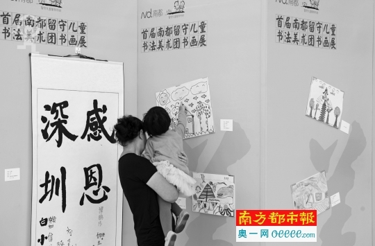 留守儿童书画展现场,不少家长和孩子走进少年宫,就被留守儿童书画展吸引过来。今年暑假,第七届南都留守儿童圆梦行动中,南方都市报社与深圳市书法院、深圳市青年书法家协会、绿景集团等单位联手,向社会征集在书法美术方面有兴趣、特长的留守儿童,重磅打造首届留守儿童书法美术团。希望以书画艺术素质教育为切入点,进一步从精神帮扶的角度,对孩子们的成长负责。