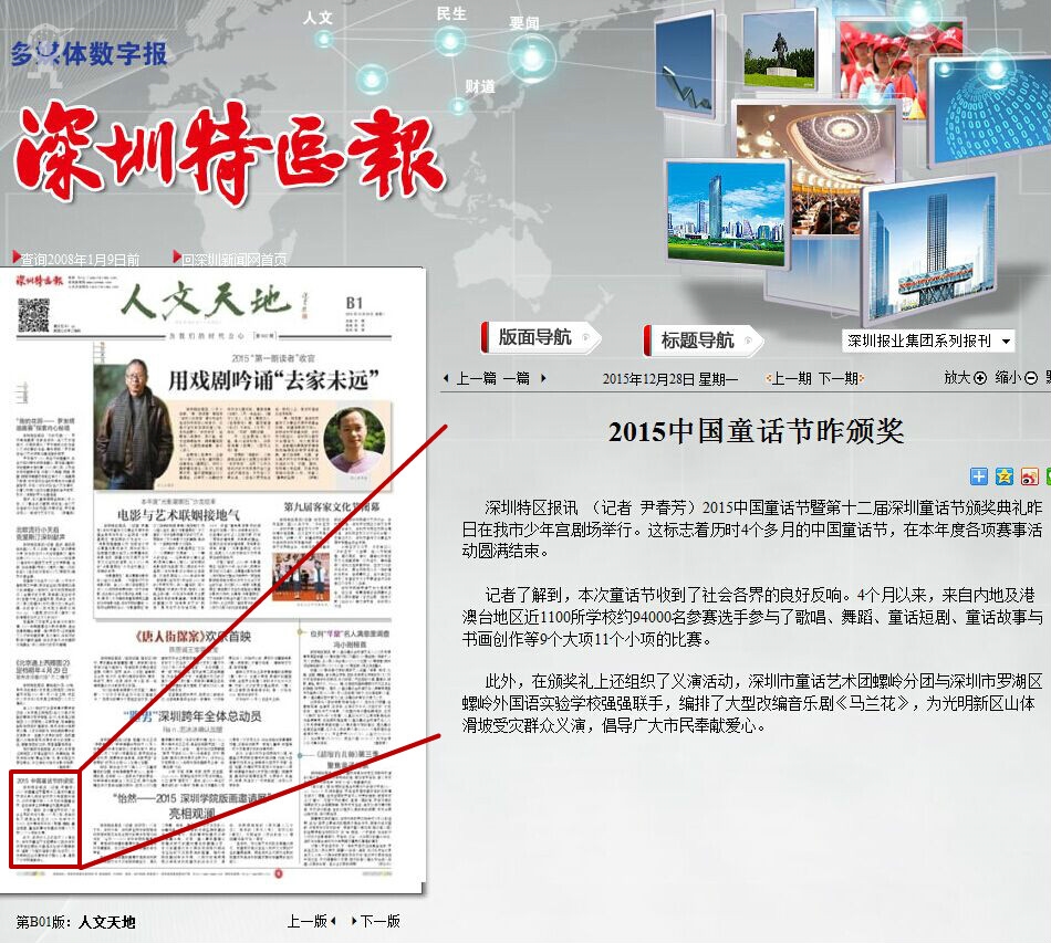 深圳特区报讯 (记者 尹春芳)2015中国童话节暨第十二届深圳童话节颁奖典礼昨日在我市少年宫剧场举行。这标志着历时4个多月的中国童话节,在本年度各项赛事活动圆满结束。