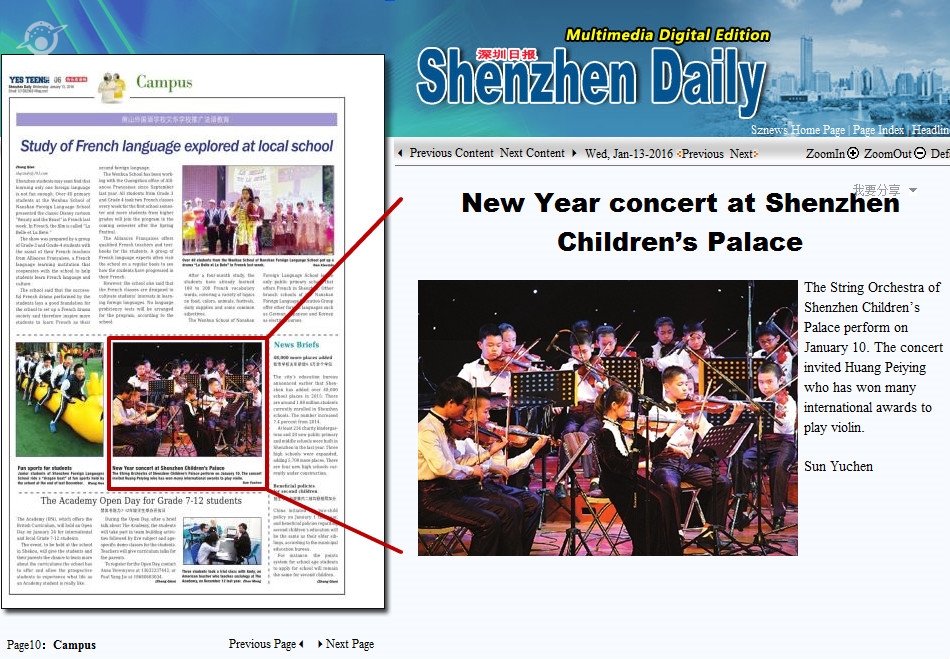 〖Shenzhen Daily〗New Year concert at Shenzhen Children’s Palace