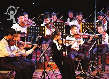 The String Orchestra of Shenzhen Children’s Palace perform on January 10. The concert invited Huang Peiying who has won many international awards to play violin.