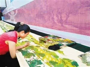 陈诗琪在完善她的巨幅十字绣作品《清明上河图》。