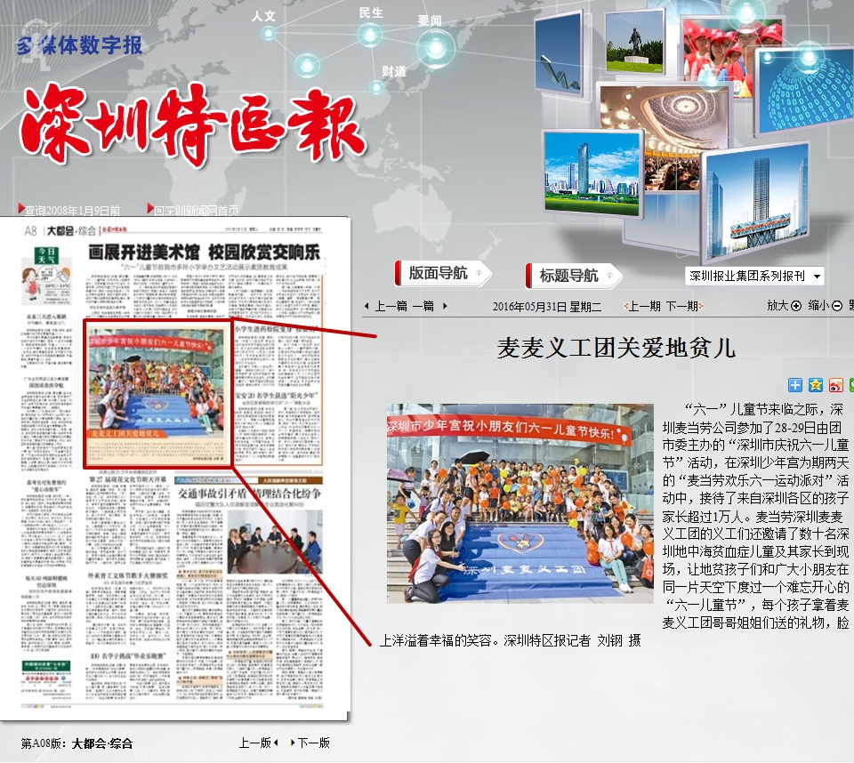 〖深圳特区报〗麦麦义工团关爱地贫儿