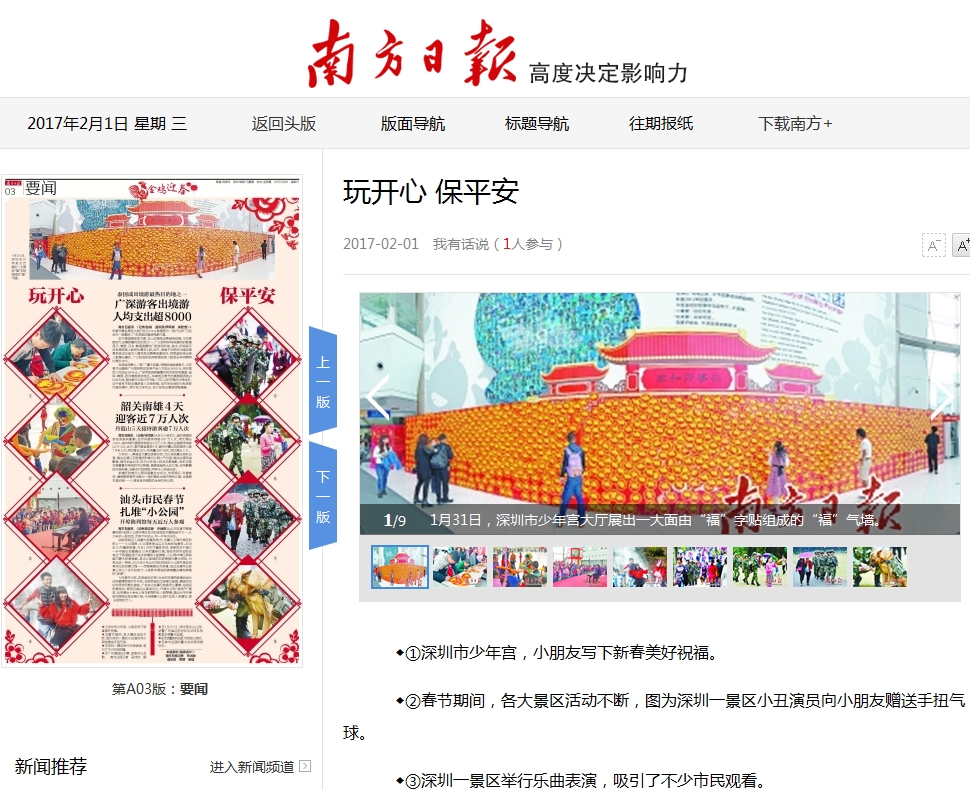 〖南方日报〗深圳市少年宫2017年春节公益活动周