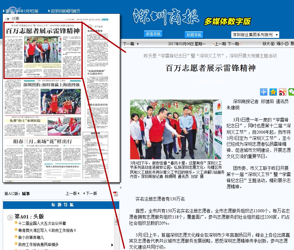 3月5日是一年一度的“学雷锋纪念日”,同时也是第十二届“深圳义工节”,自2006年起,我市将3月5日定为“深圳义工节”,至今已经成为深圳志愿者弘扬雷锋精神、促进城市文明建设、开展志愿文化交流的重要节日。
