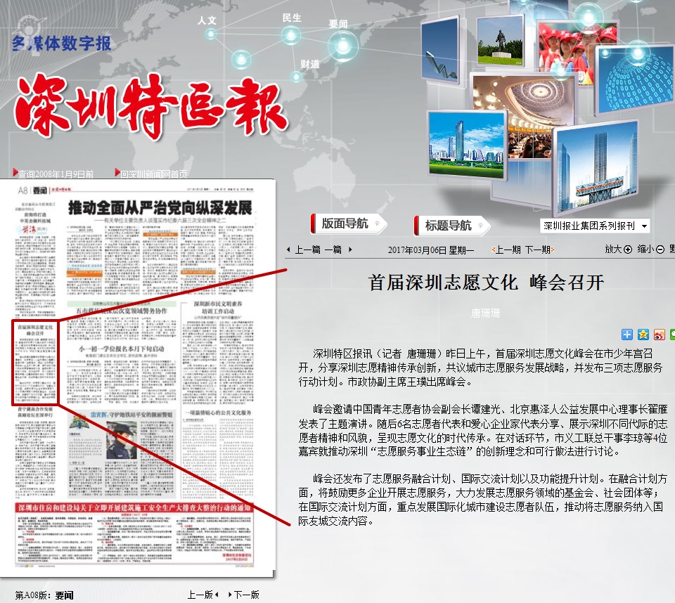 〖深圳特区报〗首届深圳志愿文化峰会召开