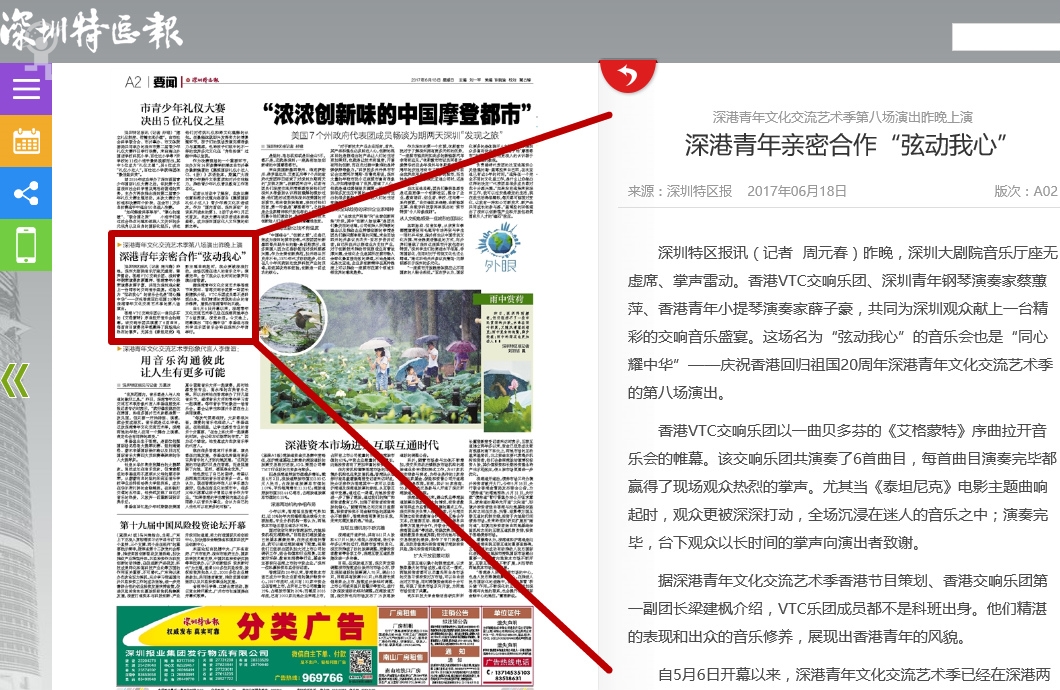 〖深圳特区报〗深港青年亲密合作“弦动我心”