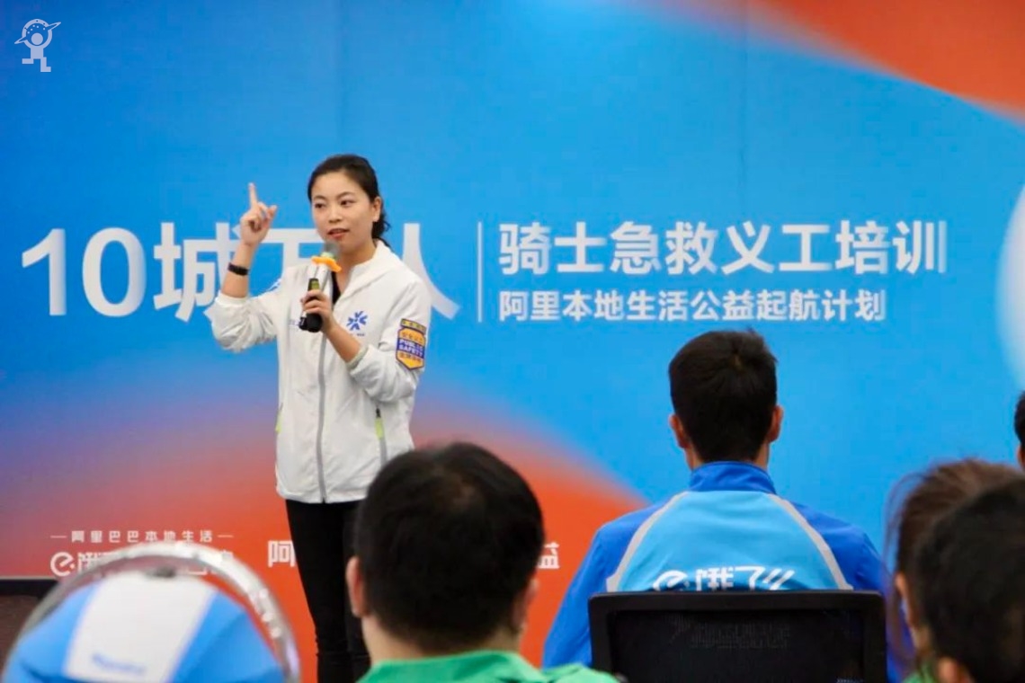 ▲深圳市公共安全义工联合会联合饿了么策划实施“十城万人”急救骑侠赋能计划,将外卖骑手培养成为“紧急救护员”。
