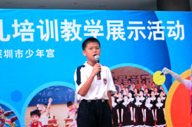 少年宫大型少儿培训展示会今天在少年宫水晶石大厅隆重举行。由深圳市少年宫主办,深圳市木子文化艺术有限公司协办的这场大型少儿培训展示会以其独特的魅力吸引了深圳各地上万名小朋友前来观看,丰富多彩的文艺节目和现场观摩表演把整个展示会推向高潮。
