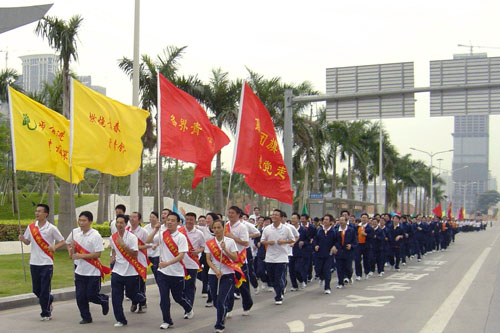 长跑日,“杰青”来领跑 2005年11月01日 今天是第26个深圳市民长跑日,少年宫全体员工在深圳团市委的带领下由新鲜出炉的“十大杰出青年”领跑,参加了此次长跑活动。 鸣枪开跑“杰青”开路周文锋、谭向攀摄影报道