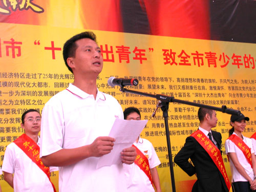 “十杰”代表徐国洪宣读向向全市青少年的倡议书