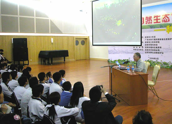 同时,余如季先生及前台湾自然科学博物馆研究员颜重威先生还给深圳的中小学科技活动小组的师生带来了《生态摄影--鹭鸶鸟在台湾》和《观鸟技巧》两场讲座。精彩的讲座内容和良好的互动气氛让在座的师生深深地感受到大自然的魅力,获益良多。