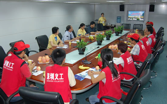 5月20日下午,在少年宫六楼多媒体会议室举行了“践行荣辱观,建设和谐少年宫”——深圳市少年宫与义工代表座谈会。少年宫党支部书记唐青、办公室主任蒋勇、展馆部长徐士斌、副部长唐萍及展馆部部分员工与前来的12名义工代表在热烈友好、轻松愉快的的氛围中,就践行荣辱观,建设和谐少年宫进行了座谈。