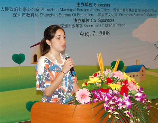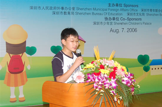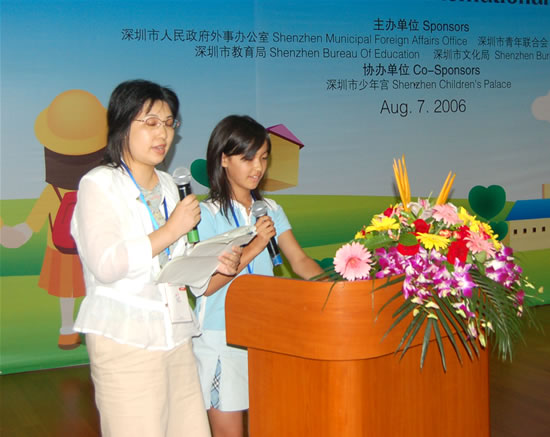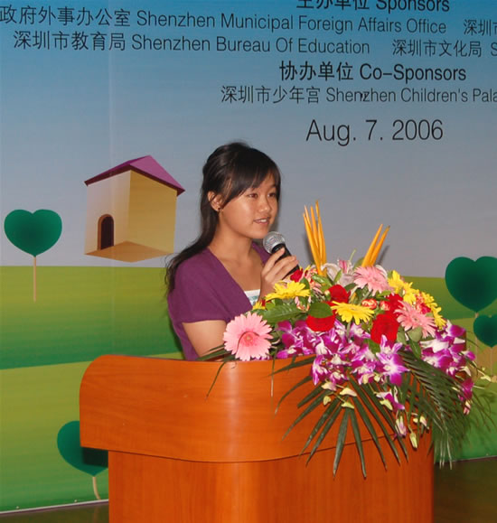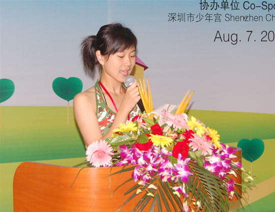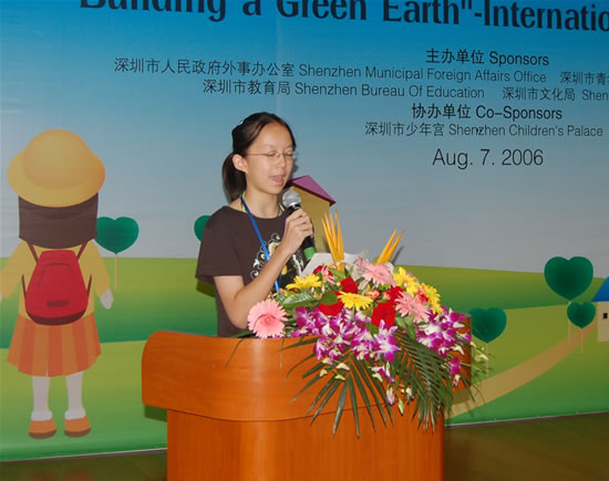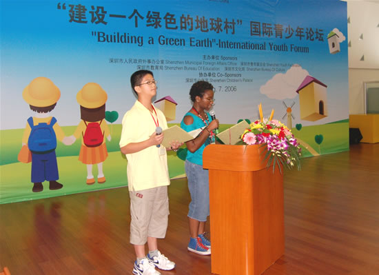 今天上午,参加第二届“友谊之旅”——深圳市与国际友好城市青少年文化交流周活动的全体青少年欢聚市少年宫,举行“建设一个绿色的地球村”国际青少年论坛。