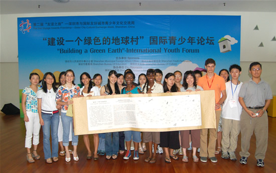 来自深圳的八个友好城市的青少年,用不同的眼光与视角,从节约资源、循环回收再用等多个方面就环境保护这一全球性课题开展了讨论,提醒人们注意保护环境,爱护我们共同的家园——地球。八个城市的青少年还联合签署了一份“第二届‘友谊之旅’国际青少年论坛环境宣言”。