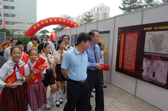 据介绍,本次主题宣教活动是面向全市青少年开展的公益性活动,将持续至12月底,包括万本读物《漫画荣耻》赠百校、两大主题图片巡回展览、优秀观后感征集评选活动等丰富多彩的内容,其中,由团市委、市少工委和市少年宫联合编印的荣辱观漫画读本《漫画荣耻》共2万册,将免费向全市100所学校赠送,长征历史图片和社会主义荣辱观主题图片巡回展览将送进校园、送到社区、送到青少年身边。现场的家长纷纷表示,这样的活动很有意义,可以让更多的孩子了解长征,结合学习社会主义荣辱观,树立正确的人生观。有些刚获知消息的市民都赶着回家领孩子前来参观。刚刚领了赠书的校方代表陈老师说,《漫画荣耻》读本用活泼的艺术形式将社会主义荣辱观融入孩子们的生活中,非常直观和容易理解,让他们懂得日常行为中的荣与耻,引导他们从小做起,从点滴做起,自觉践行社会主义荣辱观。在读书月期间举办这样的活动,显得特别有意义。