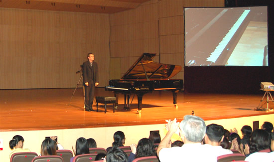昨晚的音乐会还有一个与众不同之处。观众们通过演出现场的一个手部特写屏幕,欣赏到了大师演奏时的手形和指法,近距离领略年轻的钢琴演奏家为大家展现的精湛技巧。他的快速演奏技巧令全场观众赞叹,他演奏的36分音符,颗粒性极其清楚,毫无粘连,完全进入了“大珠小珠落玉盘”的艺术境界。