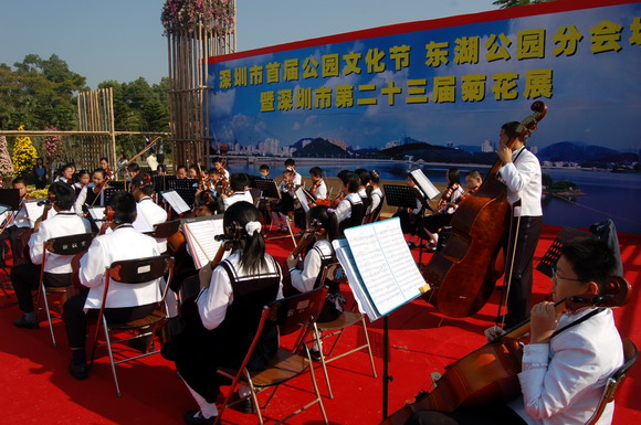 上周六(23日),在东湖公园,少年宫弦乐团的团员们参加了首届公园文化节的演出活动,表现出色。
