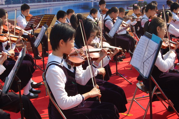 此次东湖公园活动共有六支团队参加演出,少年宫弦乐团是第一个出场的队伍。团员们演奏了《吉祥如意》、《蓝色多瑙河》等多首中外名曲,娴熟的技巧和出色的表演获得在场观众的好评,赢得一阵阵掌声,向公众展示了一个高水平少儿演出团队的良好精神风貌。