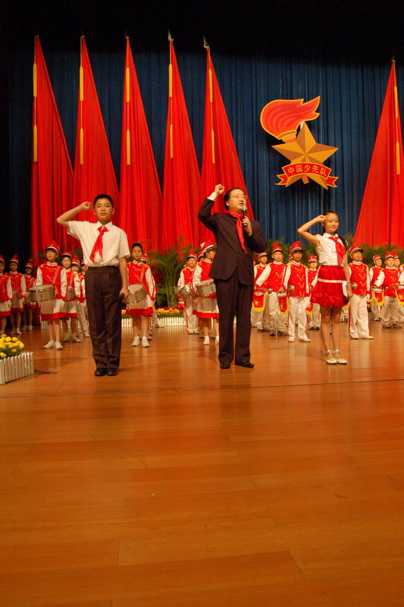 此次会议安排了别开生面的“重温少先队入队仪式”,由市领导和老同志与新老少先队员同台参加,并为新入队的少先队小朋友佩带红领巾,场面热烈庄重,十分感人。