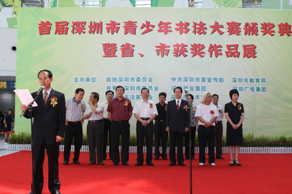 首届深圳市青少年书法大赛颁奖仪式在少年宫举行 2007年06月03日 6月3日,首届深圳市青少年书法大赛颁奖典礼暨省、市获奖作品展在深圳市少年宫举行。市政协副主席廖军文一行领导出席了颁奖仪式并至少年宫四楼展厅观摩了本次获奖的书法作品展。