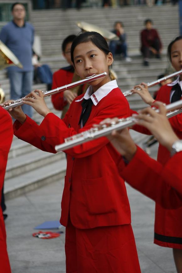“管乐节的演出如此受追捧”,主办方少年宫有关人员说,“以至于全场近八百座位一早就全都爆满,还有很多家长和学生热切希望能够观看演出。最后,在实施了临时安全保护措施之后,少年宫增设了几十个加座,让守在门口的家长和孩子们能一睹小乐手的风采。”