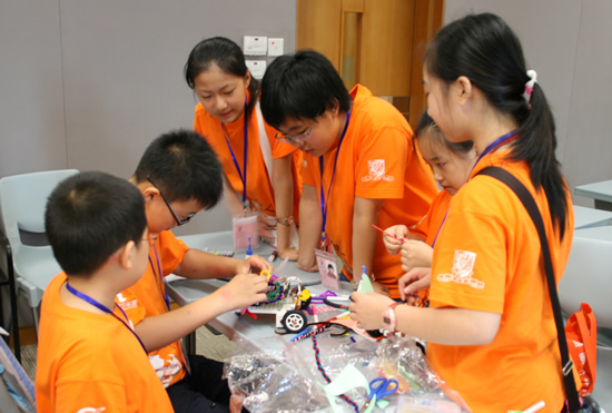 在香港中大进行创意机器人的搭建竞赛活动