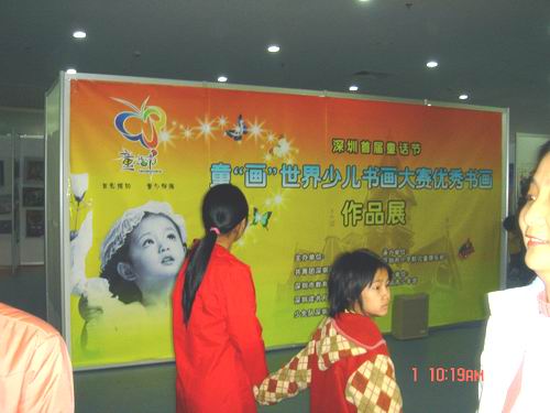 今天上午十点,深圳首届童话节重点主题活动之一的“童‘画’世界少儿书画大赛”成果展在深圳市少年宫举行了隆重的开幕仪式。