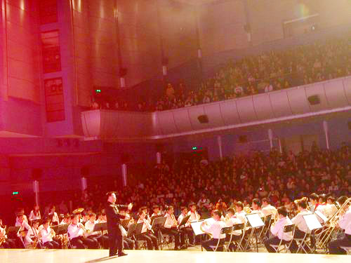 少年宫交响管乐团与舟舟合作的演奏现场