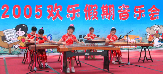 今天上午,在少年宫上演的一场高品质的器乐音乐会,使广大家长及小朋友大饱耳福。这是继昨天“2005年欢乐假期系列音乐会”首演以来的又一场精彩音乐会。此后,在8月的每个周六、周日,少年宫都会为广大少年儿童免费献上精心准备的音乐大餐。本次活动由深圳市少年宫和云南(昆明)长河乐器有限公司联合主办,将邀请在本市各个文艺比赛中获奖的部分优秀学生进行古筝、琵琶、二胡、舞蹈、钢琴、电子琴等项目的表演。