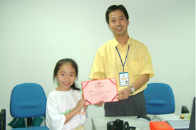 结合“2005欢乐假期音乐会”少年宫举行了闭营仪式:佘可等三位营员获得了“最佳作品奖”荣誉证书,徐晓晖等三位营员获得了“最具潜力奖” 荣誉称号,谭向悦等三位营员获得了“最佳动画制作奖” 荣誉称号,杨嘉华等六位营员获得了“优秀营员”荣誉称号。在悠扬的古筝乐曲伴奏下,两位营员还现场作画,将民乐演奏的演员绘得惟妙惟肖,受到了在场的学生及家长好评,赢得了在场参观少年宫的“深港学生携手夏令营”400余师生的热烈掌声和喝彩。