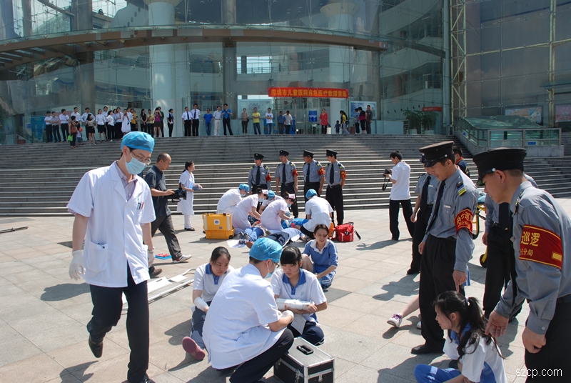 市少年宫与市儿童医院联合开展应急医疗救援演练 2012年05月09日 为检验及提高青少年儿童应急医疗救援水平,2012年5月8日上午,市少年宫与市儿童医院在少年宫西广场联合进行了群体踩踏事件应急医疗救援演练。