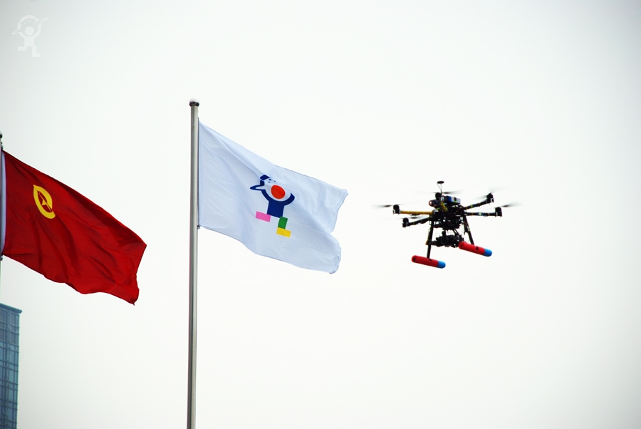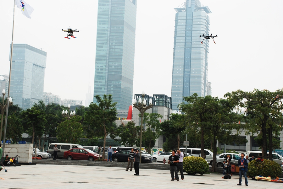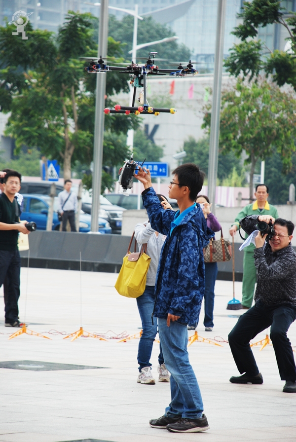 同学们操作的遥控飞行器,它可以摄影摄相。