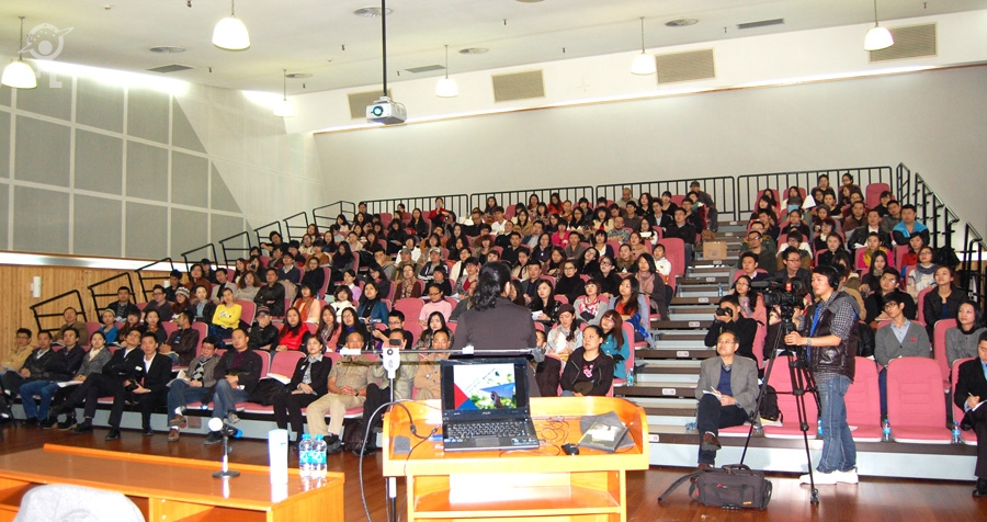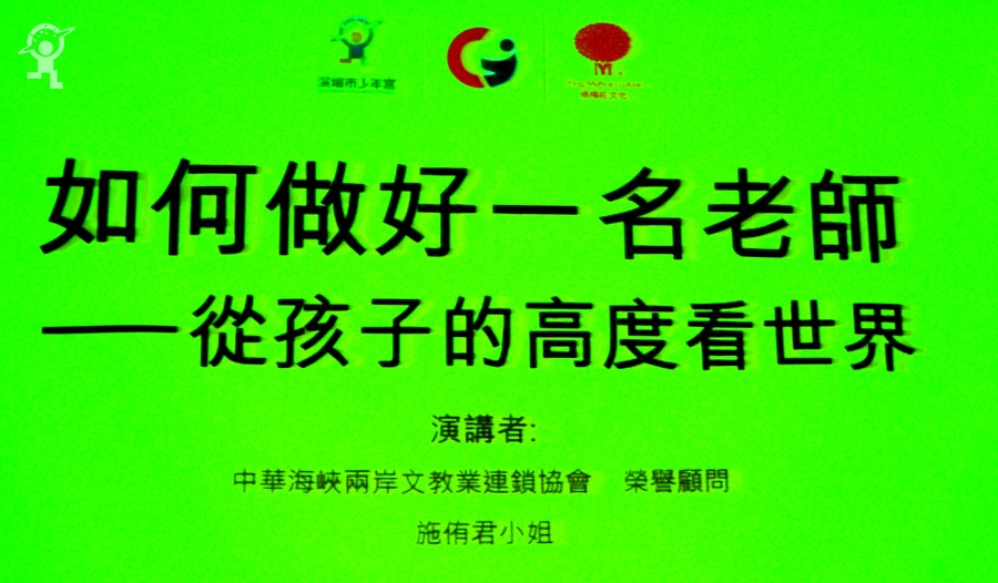 2012年12月25日上午,一场文教行业专业级的专题讲座在少年宫音乐厅举行。讲座的主题是“如何做一名好老师——从孩子的高度看世界”,由台湾著名讲师中华海峡两岸文教业连锁协会荣誉顾问、阳明数位学院营销总监施侑君小姐主讲。深圳市少年宫主任单协和、副主任王赐山、副主任王斌、督导主任徐士斌、中华海峡两岸文教业连锁协会会长伍必中、阳明数位学院董事长江进玉、阳明数位学院副总经理徐素华、杨梅红文化负责人王明涛、杨梅红等文教行业专家以及深圳市青少年校外教育工作协会的会员近两百人出席了讲座。