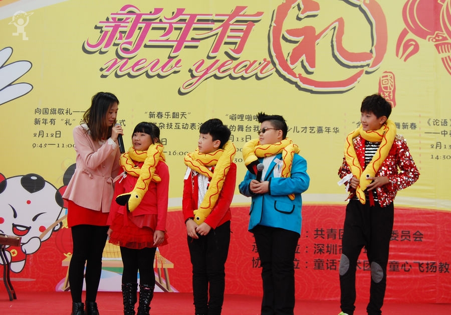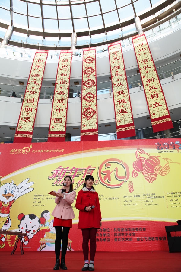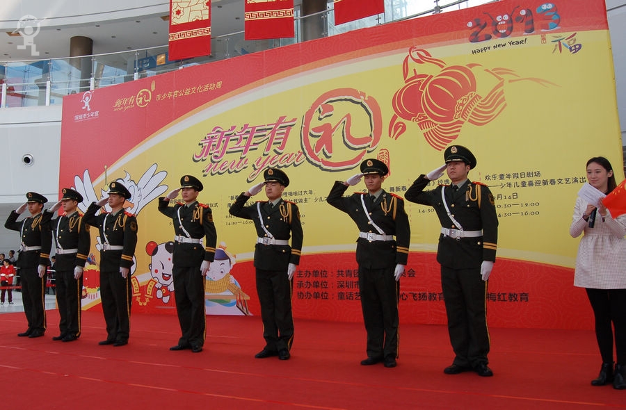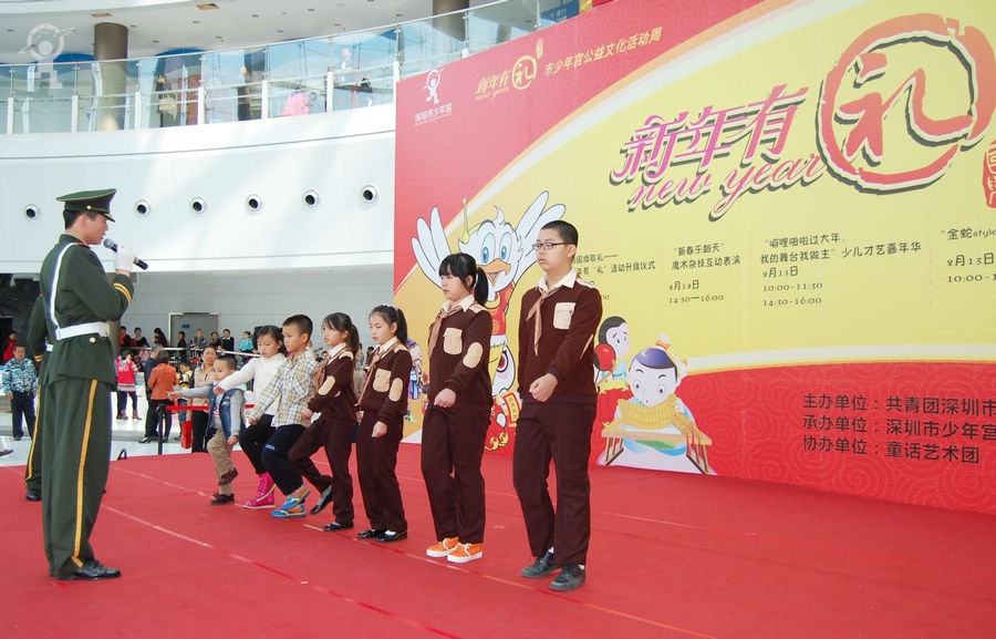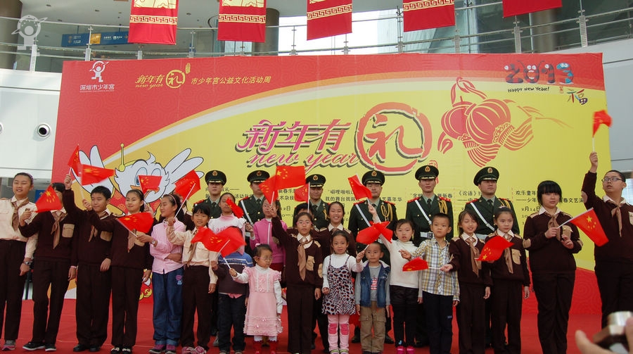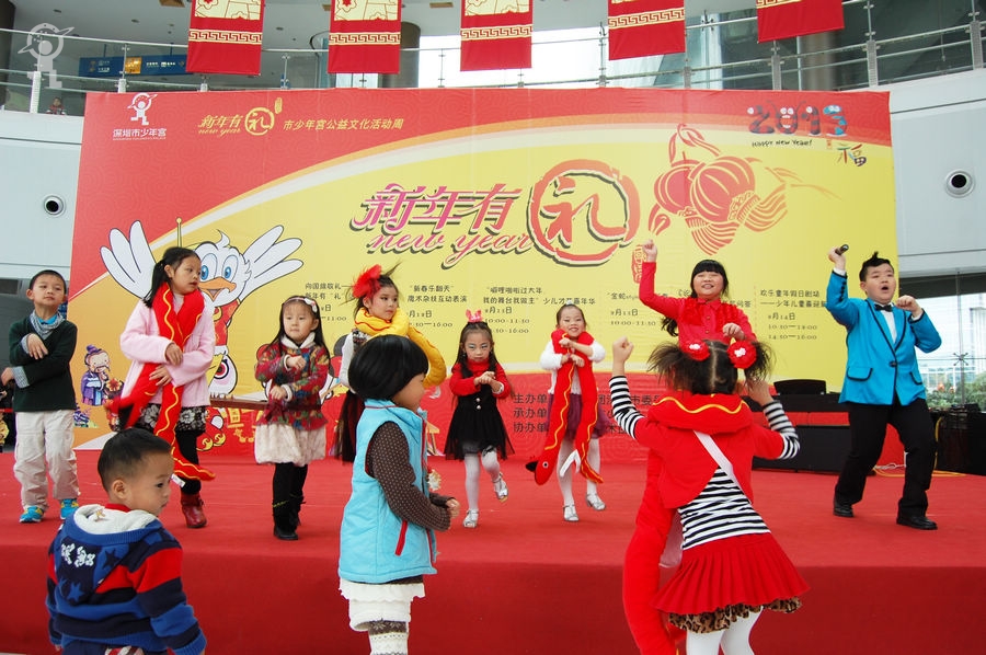 蛇年新春,深圳市少年宫举办“新年有‘礼’——2013市少年宫公益文化活动周”。活动围绕关爱主题,突出“美丽中国”与“中国梦”的概念,以“礼”字为核心,倡导广大青少年“学礼、懂礼、讲礼”,传承中华优秀传统礼仪文化,感受和参与现代文明礼仪文化的建设,培养孩子们的爱心,以实际行动向贫困儿童、深圳对口支援地区学校等特殊群体献上一份爱心或礼物。同时,活动也是少年宫送给广大少年儿童的一份新年礼物:将推出公益电影、文艺演出、展览、参观体验、剪纸、讲座与互动游戏等16项活动,大年初三将与深圳退伍战士国旗班共同举办向国旗敬礼活动,同时,相继推出我的中国梦剪纸竞赛.双语学论语,美丽中国绘画展,金蛇style舞蹈pk.噼里啪啦过大年自荐表演等活动。以丰富少年儿童春节假期的文化娱乐生活,让孩子们在少年宫度过一个欢乐而富有意义的春节。